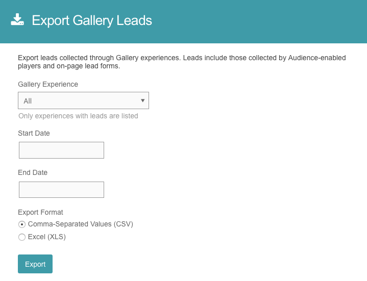 從受眾模塊導出圖庫線索時,將僅導出使用受眾線索表格捕獲的數據。來自自定義潛在客戶表單的潛在客戶數據將存儲在您的營銷自動化軟件中。