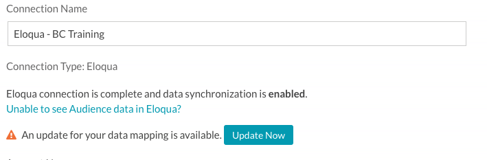 檢查 Eloqua 資料連線,以取得有關資料對應更新的警告。