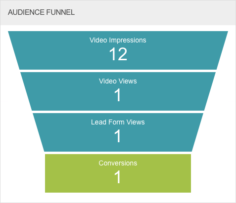 「觀眾漏斗」會在所選時段內,在具有觀眾領先表單的觀眾中,針對具有觀眾領先表單的影片顯示量度: