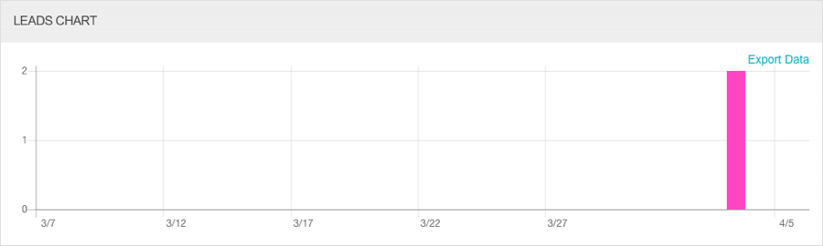 「潛在客戶圖表」會顯示所選期間內,依天提交的潛在客戶表單數目。將鼠標懸停在圖形上將顯示實際數據點。